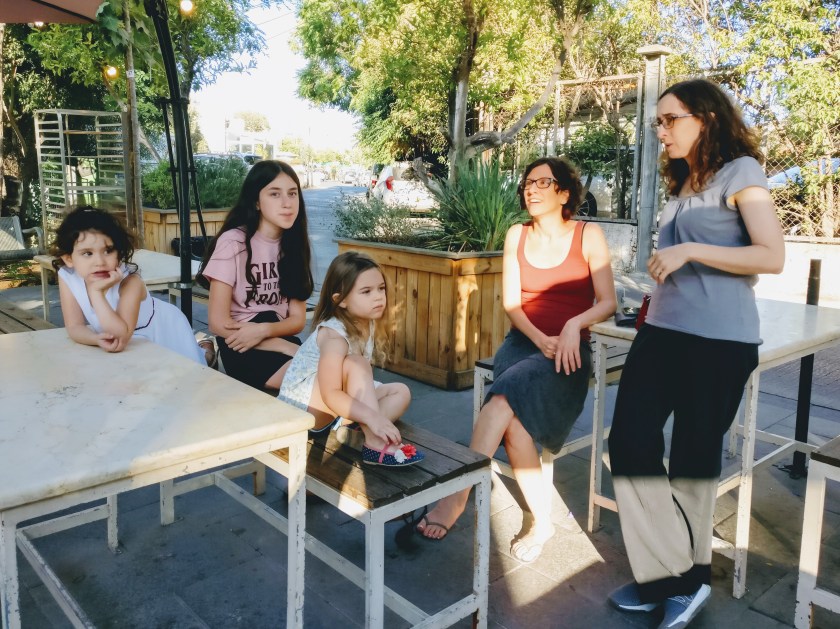 After a short rest, we bussed over to visit Adena’s cousin Noa and her three daughters. Here are a few photos from the First Station outdoor mall just down the street from Noa and Chaim’s place. The girls got a long so well and are already planning the next get-together.