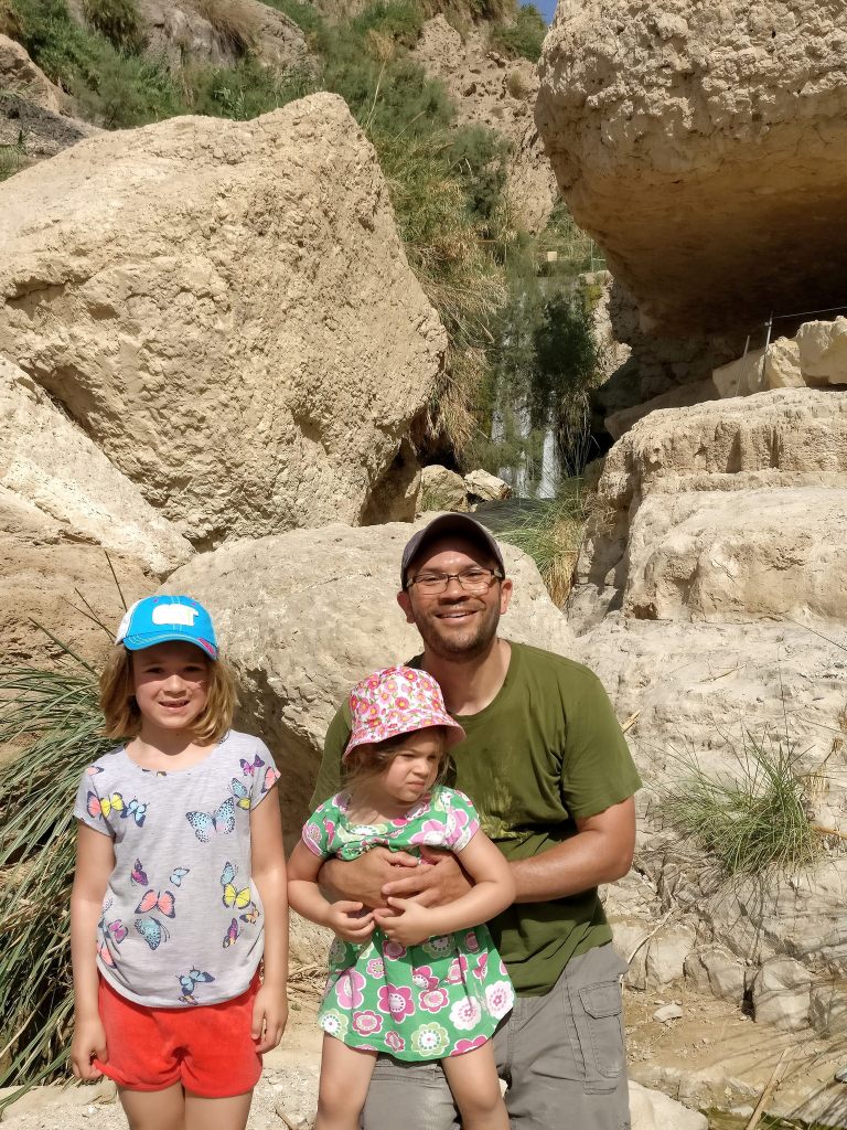 Thursday morning we all got up early and made our way over to the hotel restaurant for breakfast. The spread was incredible with just about anything you could possibly want to eat. Shakshuka is the breakfast food of my dreams. I have to learn how to make it. The chef was making the rounds and struck up a conversation with the girls. It turns out that he is originally from Montreal, but now splits his time between Ein Gedi and Jerusalem and was very playful with Millie and Aviva for our entire stay. Here’s a photo of the room, complete with patio out front.
