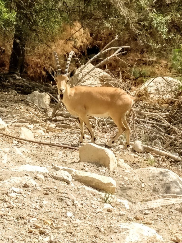 We did not have time to see much of the wildlife at Ein Gedi, but there were lots of ibexes (like this one) alongside the trail. We also saw a few hyraxes near the upper waterfall.