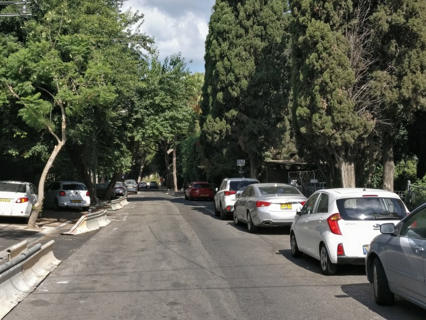 There is construction on HaYam Road, which runs parallel to our street and is one of the main routes down to the beach. The metal barriers shown below were placed there a few weeks back to clear the way for buses rerouted down our street, but they also took away already scarce parking spaces.